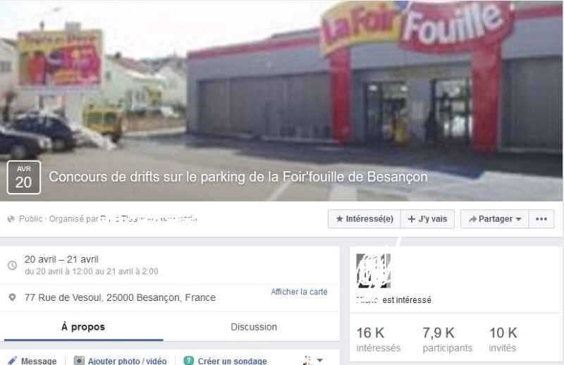 Qu'à cela ne tienne, Loïc et Brice ont décidé de récidiver avec un nouveau canular : organiser une épreuve de « drift » (« dérapage » en voiture ou en moto) sur le parking du magasin Foir'Fouille situé rue de Vesoul à Besançon.