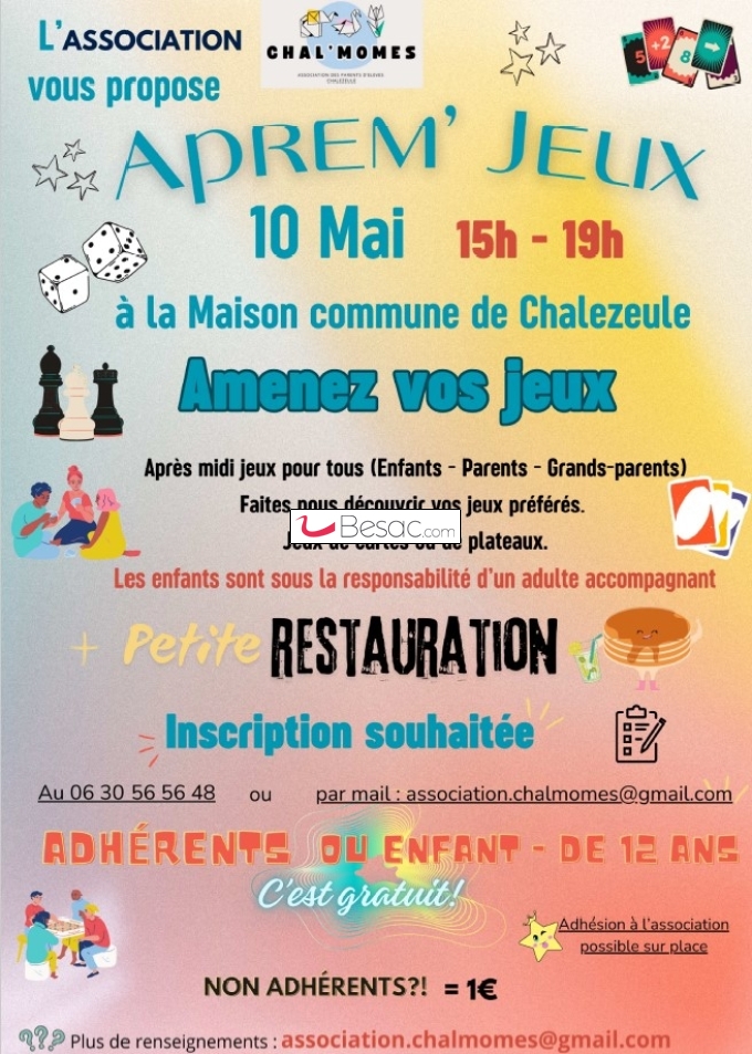 Sports, LoisirsL'Association des Parents d'Élèves Chal'Mômes vous invite à venir jouer et partager un super moment en famille ou entre amis : grands parents, parents, petits enfants...cet évènement s'adresse à tous !