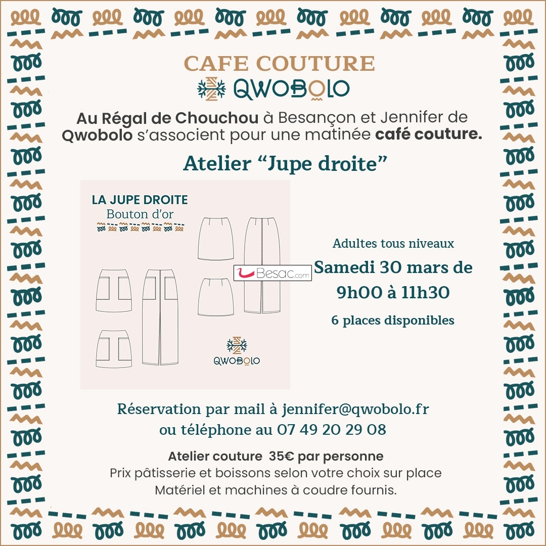 Viens passer un moment café couture gourmandise avec Jennifer de "Qwobolo" au Salon de thé "Au Régal de Chouchou".