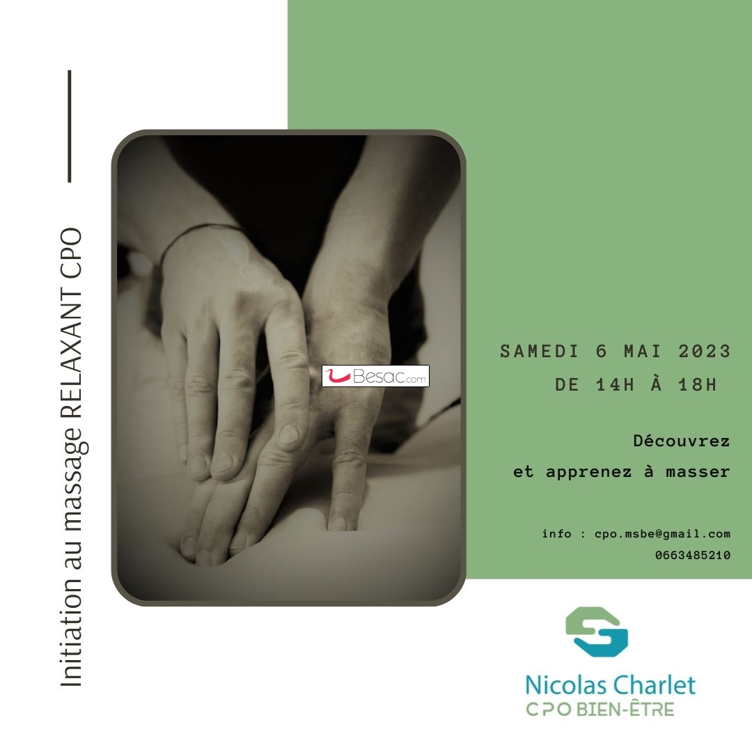 L'atelier d'initiation au massage « Relaxant CPO » est limité à 4 personnes pour que je puisse vous accompagner au mieux !