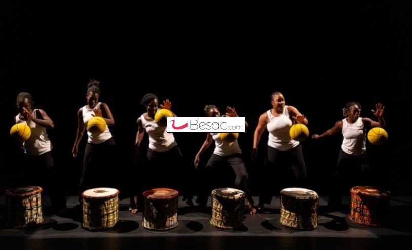 Chorégraphe passé par le jonglage et l’acrobatie, Thomas Guérineau entraîne un « six majeur » d’artistes maliennes dans une pièce de « basket musical » où les corps dribblent autant qu’ils dansent. Telles des percussions qui superposent couches et nuances rythmiques, les ballons sont lancés au sol, frappés avec des morceaux de bois, passés de mains en mains, projetés sur des tambours pour battre la cadence de la gestuelle des corps et la mesure des chants traditionnels d’Afrique de l’Ouest. Le tout se combine jusqu’à nous saisir dans une hypnose musicale et visuelle. Une création aussi inventive que follement énergisante.