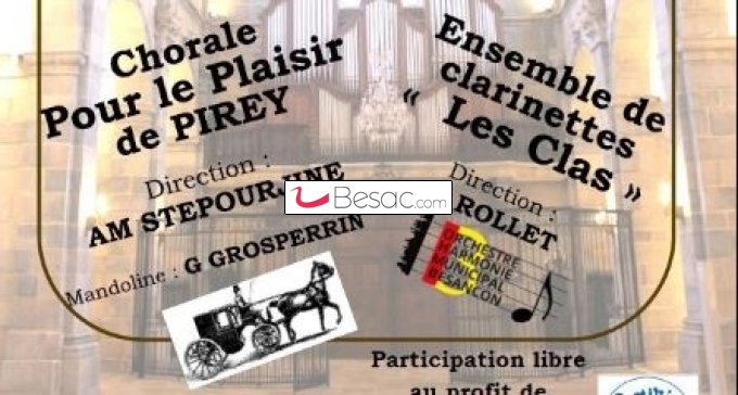 Musique, SoiréesPrésenté par la Chorale Pour le Plaisir de Pirey & l’Ensemble de clarinettes « Les Clas »