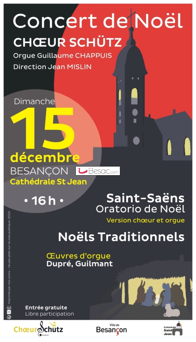 Le dernier concert de Noël du chœur Schütz remonte au 22 décembre 2019 en l’église Saint-Claude de Besançon. En 2024, nous revenons à cette thématique, mais nous chanterons dans la cathédrale Saint-Jean, parfaitement adaptée à la musique pour chœur et orgue.