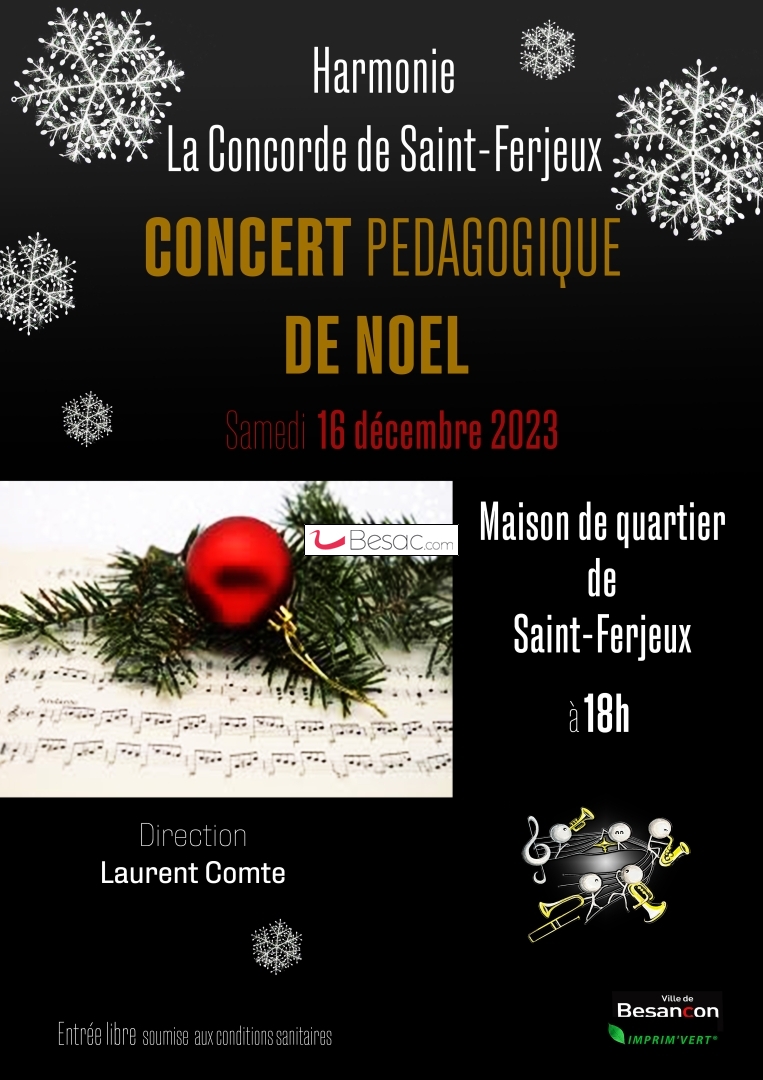 Musique, SoiréesConcert pédagogique de Noël de l'Orchestre d'Harmonie La Concorde de Saint-Ferjeux : Le chef vous explique la musique... en faisant appel à vos oreilles, à votre mémoire, et votre humour !