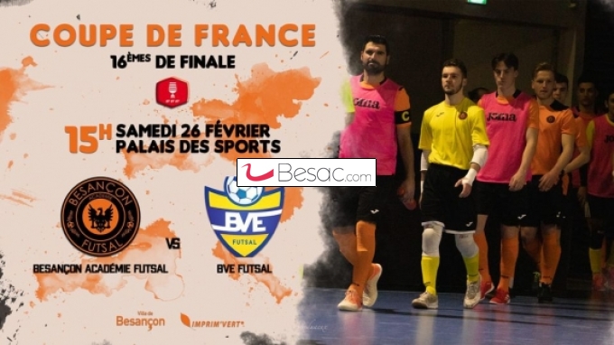 Le Besançon Académie Futsal vous invite à son historique 1/16eme de finale de Coupe Nationale de Futsal le samedi 26 février prochain !