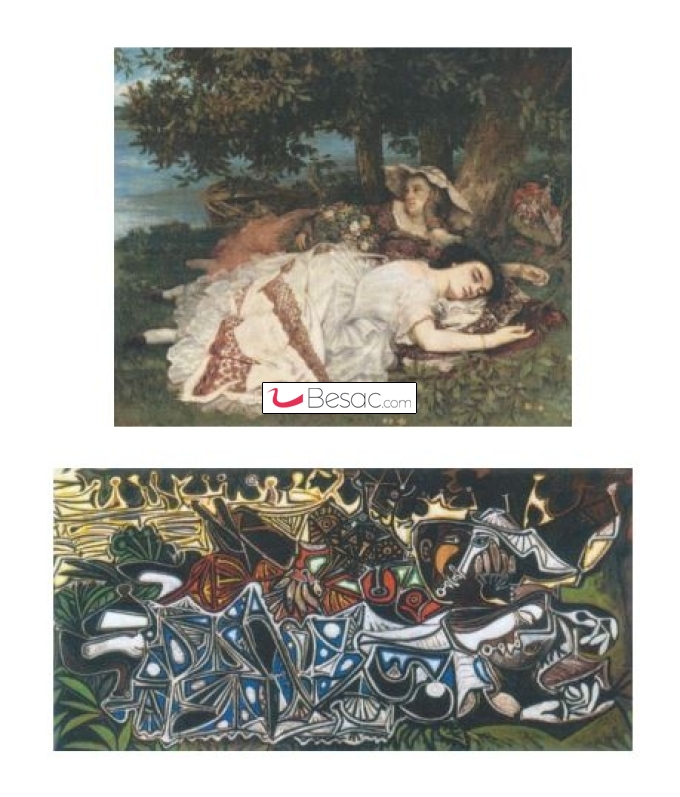 Le peintre catalan découvre tôt la peinture du maître d’Ornans, dès son arrivée à Paris en 1900, lors de l’Exposition universelle. Courbet s’immisce par la suite chez Picasso doublement à la fin des années 40, par la réinterprétation des Demoiselles des bords de la Seine, ainsi que par l’achat pour sa collection personnelle de l’étonnante Tête de chamois, bête à cornes rappelant le bestiaire picassien.