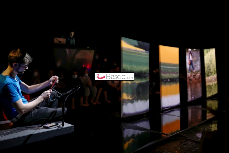 Sur les 2 888 km de périple, ils ont filmé les couleurs, les bruits, les émotions, les histoires entendues au bord de l’eau. De ces souvenirs a jailli Danubia, une expérience sensorielle qui immerge le public au cœur d’une installation faite de sons, de corps en mouvement et d’images projetées sur des objets flottants.