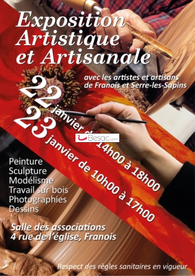 ExpositionsL’association La Clé organise, en partenariat avec la commune de Franois, une exposition artistique et artisanale. L’occasion de découvrir les talents locaux qui présenteront leurs créations aux visiteurs, de passer des moments conviviaux en discutant autour d’une œuvre et pourquoi pas de déclencher des vocations.