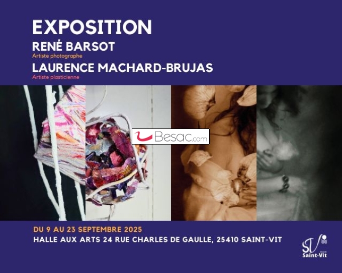 Dans le cadre de cette première édition des JNA, événement solidaire, pédagogique et facilitateur en faveur de la visibilité des artistes, de la vente des œuvres, et de la rencontre directe des artistes et du public, La Halle aux Arts de Saint-Vit accueillera Laurence MACHARD BRUJAS et René BARSOT.