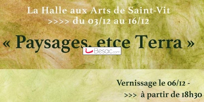 ExpositionsExposition collective « Paysages, etce Terra » regroupant une dizaine d’artistes pluridisciplinaires qui viendront investir la salle Tramu de la Halle aux Arts de Saint-Vit, 24 rue Charles de Gaulle. Du 3 au 16 décembre 2024