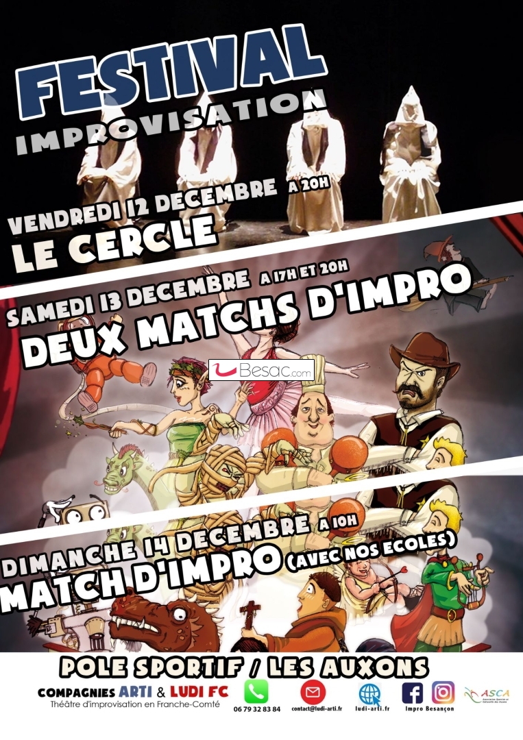 Toute l'année, dates, billetterie & infos sur notre site ludi-arti.fr • Facebook / Instagram : “Impro Besançon” • Pour nous joindre en direct : 06 79 32 83 84