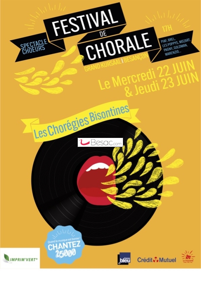 Les chorégies bisontines sont le 1er festival de chorales fonctionnant en une succession de chorales toutes les demi-heures au grand Kursaal de BESANCON le 22 et 23 juin 2022 de 17h à 22h30.