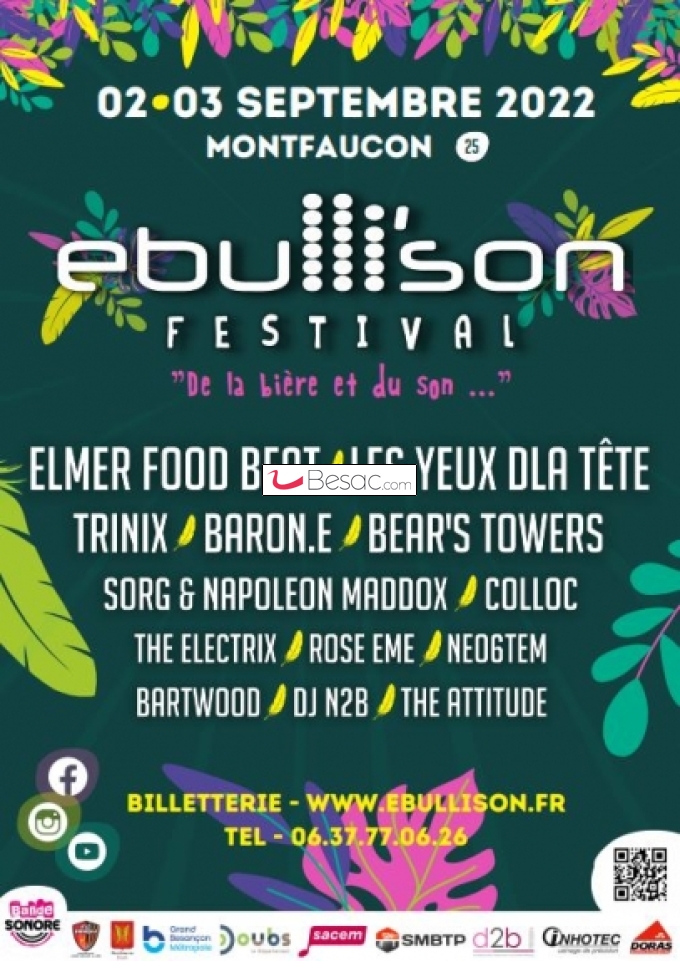 Musique, SoiréesIssu d'une fête de la bière créée par une bande de copains du village de Montfaucon (25) en 2017, c'est tout naturellement qu'en 2018 ce festival prend naissance sous le nom d'Ebulli'son "le festival de la bière et du son".