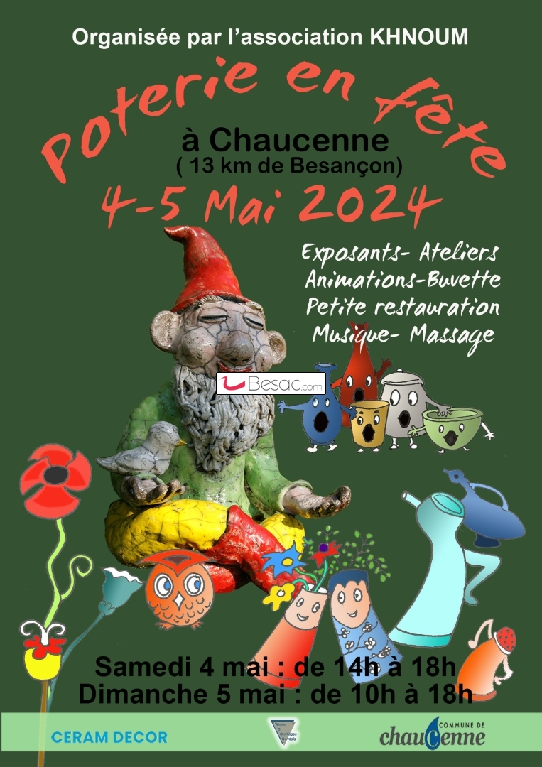Fête de la poterie à Chaucenne (13km de Besançon) les samedi 4 mai (14h-18h) et dimanche 5 mai 2024 (10h-18h), quartier mairie :