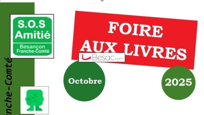 La prochaine Foire aux Livres organisée par S O S Amitié Besançon Franche-Comté aura lieu cette année du vendredi 10 au dimanche 12 octobre 2025.