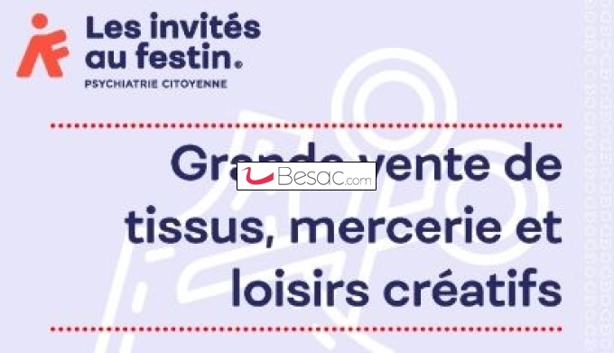 Marchés, Vide-greniersLes Invités au Festin vous convient à leur 4ème grande vente de « TISSUS, MERCERIE ET LOISIRS CRÉATIFS »