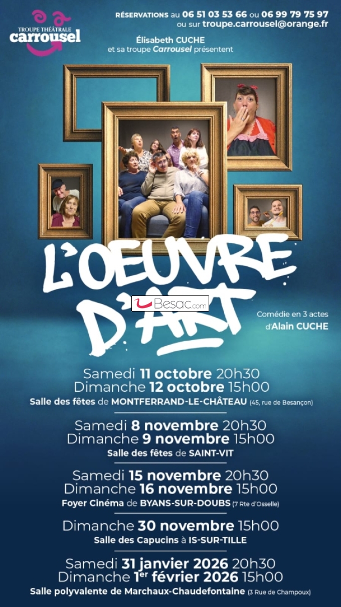 Dans cette comédie hilarante, notre artiste des mots, Alain CUCHE, a troqué sa plume contre un pinceau pour étaler et (dé)peindre sur sa toile les différentes couleurs et facettes de la nature humaine, de la plus honnête à la plus vénale. Il en ressort une œuvre que Gustave COURBET lui-même n’aurait certainement pas reniée et qui a toute sa place au Louvre…Quoique !