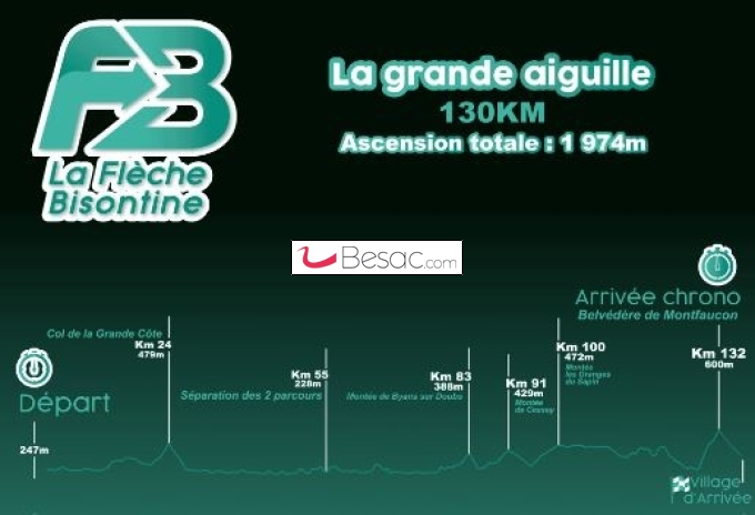 Avec 2 parcours chronométrés : « La Grande Aiguille » (135km) et « La Petite Aiguille » (90km), et la possibilité de réaliser « La Petite Aiguille » en randonnée (sans chronomètrage) ; La Flèche bisontine se veut ouverte à tous : des familles aux sportifs amateurs jusqu’aux plus confirmés !
