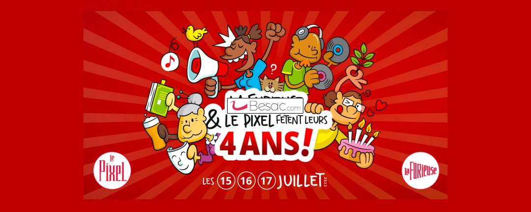 L'association La Furieuse et Le Pixel fêtent leurs 4 ans d'existence. Pour l'occasion, et comme chaque année, nous avons concocté aux Bisontins?nes un programme varié. Théâtre, musique, convivialité mais aussi dégustation de produits locaux sont prévus tout le week-end.
