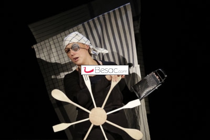 À partir d'ustensiles de cuisine, l’équipe construit à vue les décors et les