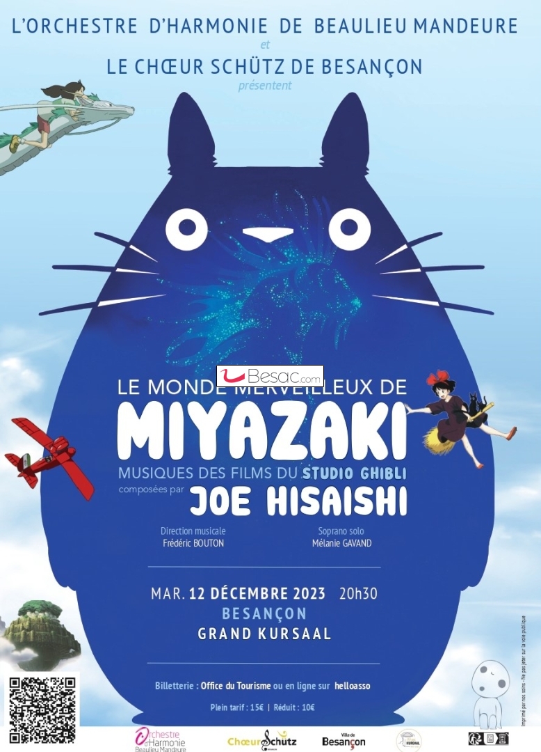 Devant le succès remporté par le concert de décembre 2022, l'Orchestre d'Harmonie de Beaulieu-Mandeure et le Chœur Schütz de Besançon ont souhaité vous proposer à nouveau cette immersion dans l’univers fascinant de Miyazaki et de son monde imaginaire.