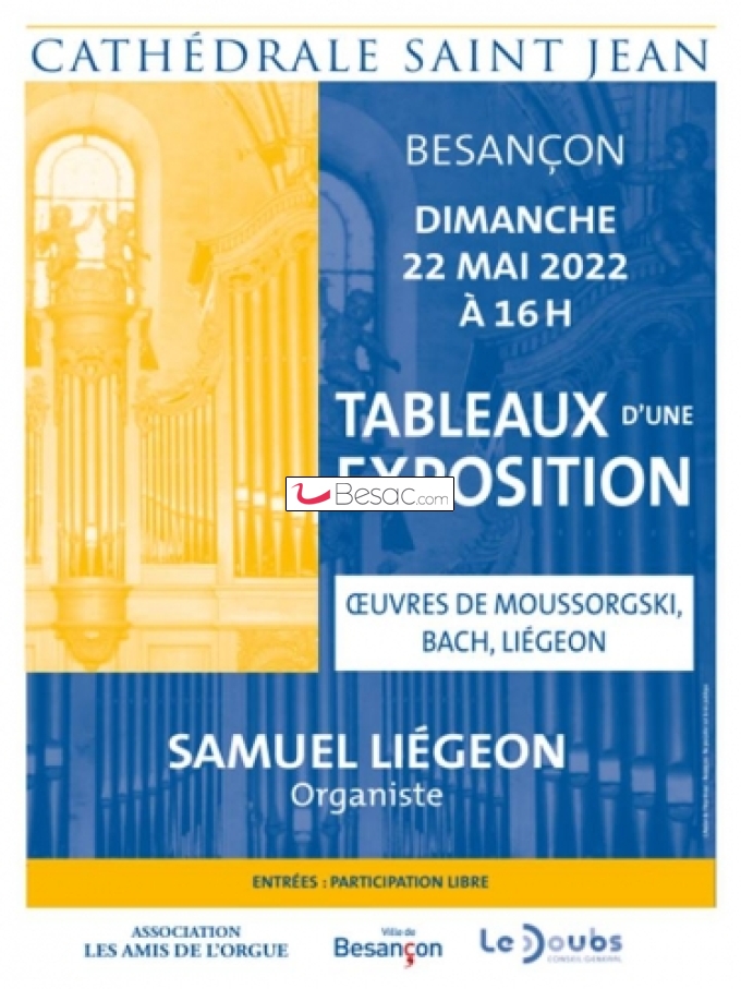 Ce 22 mai 2022, il sera l’invité des Amis de l’Orgue de Besançon, pour un programme original intitulé « Tableaux d’une exposition ». Interprète et improvisateur de talent, Samuel Liégeon a également réalisé sa transcription pour orgue de cette œuvre de Modeste Moussorgski.