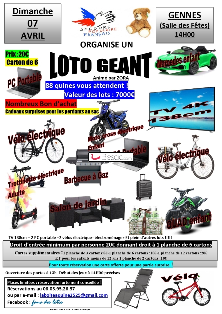 DiversLe Secours Populaire Français organisera un LOTO GEANT