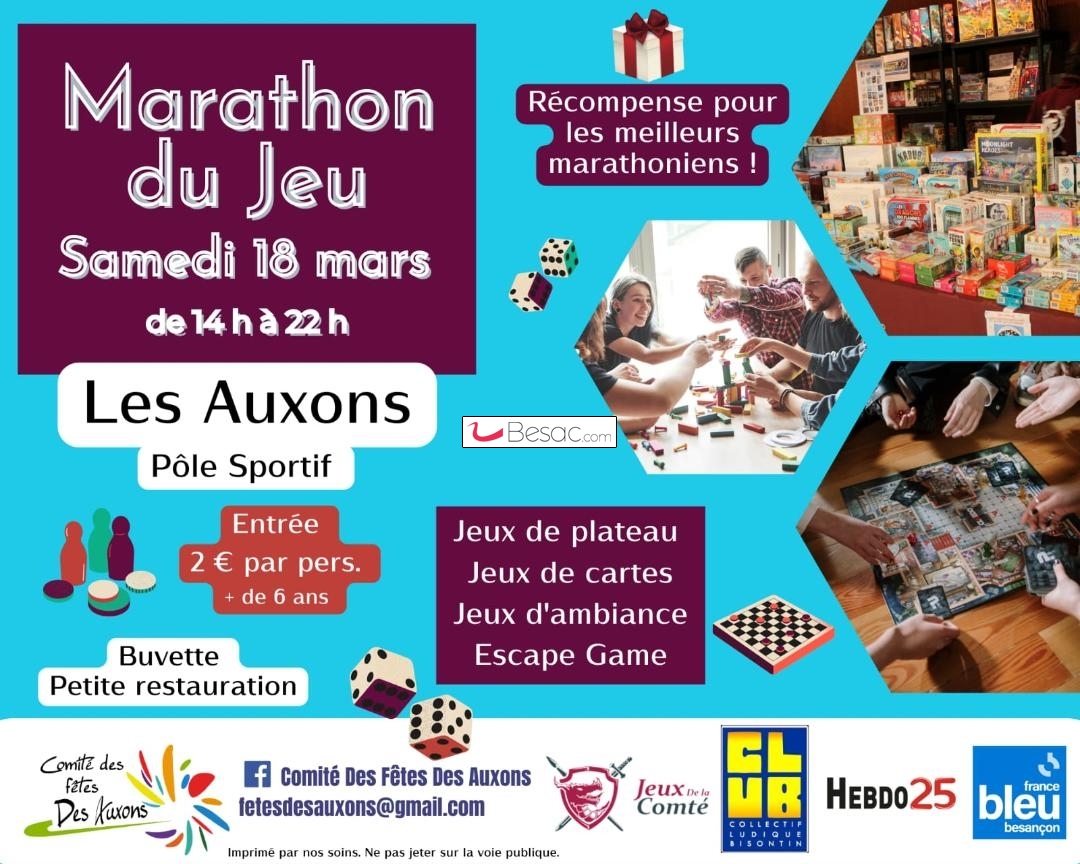 Jouer des heures durant, c’est ce que vous propose le comité des fêtes des Auxons le samedi 18 mars de 14 h à 22 h au pôle sportif des Auxons. Au programme : jeux de plateau, jeux d'ambiance, jeux de cartes, escape game... pour tous les âges et tous les goûts !