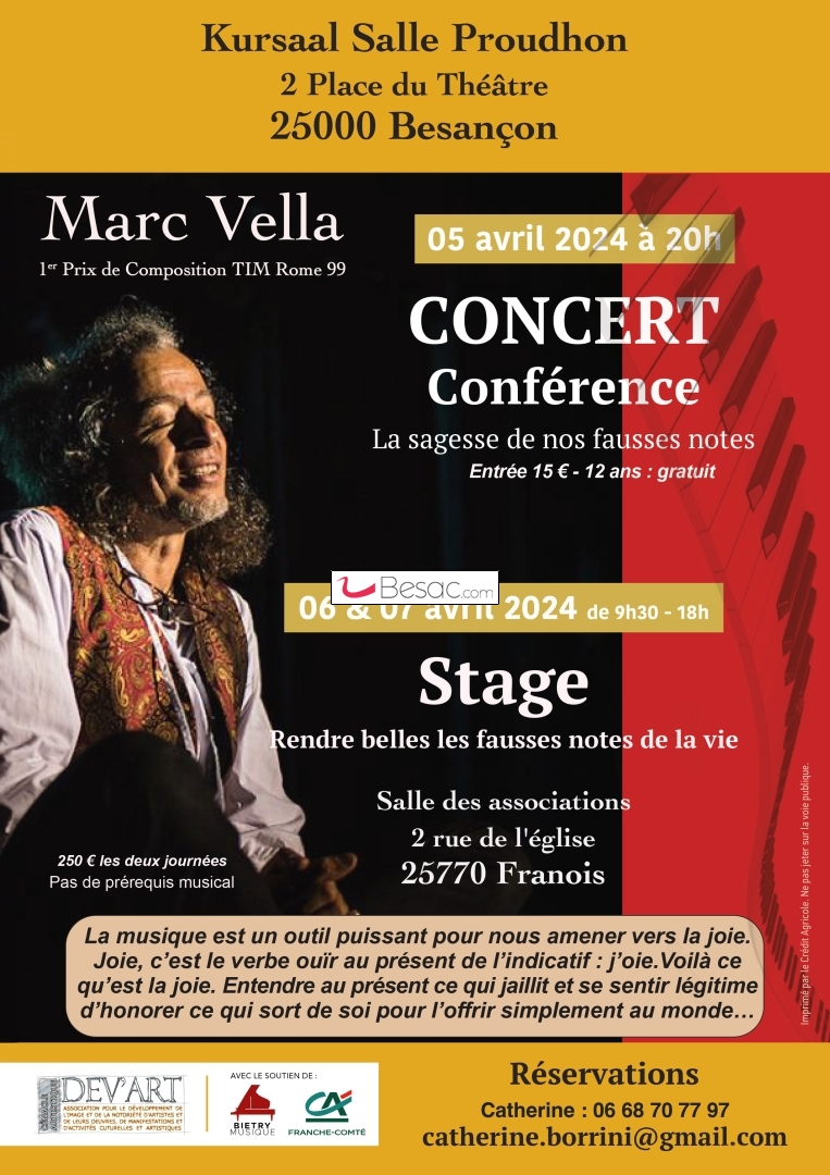 Lors de cette rencontre avec Marc Vella et son piano, vous recevrez des clés précieuses pour harmoniser les fausses notes de votre vie.