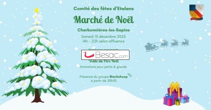 Marchés, Vide-greniersLe Comité des Fêtes d'Etalans vous propose un marché de Noël le samedi 13 décembre 2025 à partir de 14h à la salle des fêtes de Charbonnières-les-Sapins !