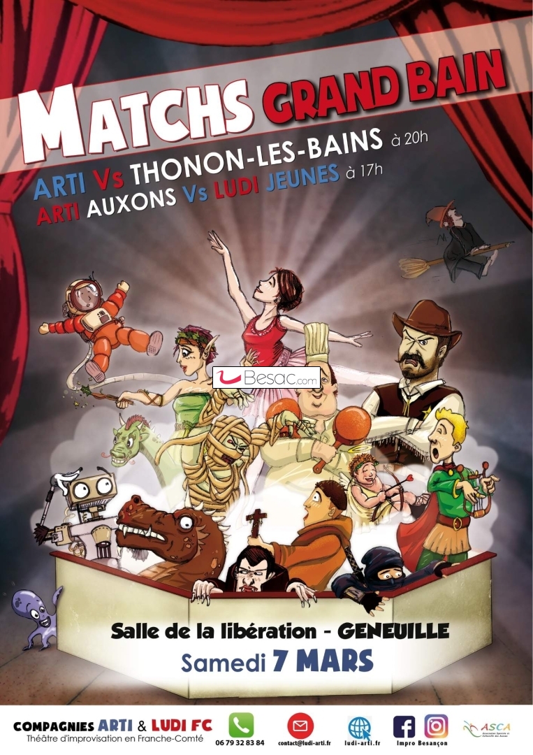 Toute l'année, dates, billetterie & infos sur notre site ludi-arti.fr • Facebook / Instagram : “Impro Besançon"