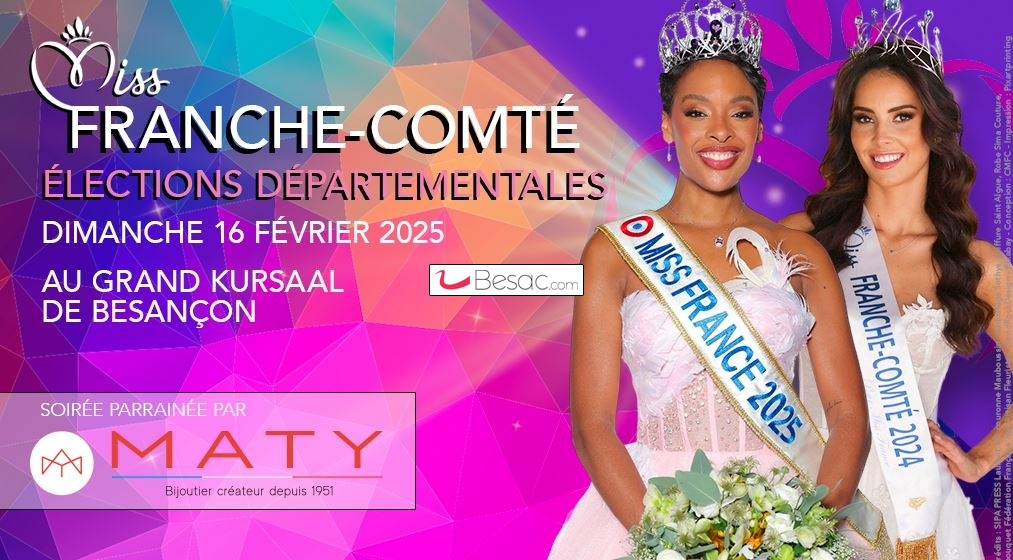 En présence de Angélique Angarni-Filopon, Miss France 2025, le Comité Miss Franche-Comté vous offre 4 élections en une soirée !