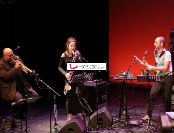 Élodie Pasquier – également accueillie en solo, cette saison – s’est entourée du batteur belge Teun Verbruggen, du trompettiste Fred Roudet, du saxophoniste Antoine Mermet et du guitariste Thibault Florent. Autant de chasseurs de timbres qui alternent entre séquences abstraites et méditations épurées. Un quintet d’aventuriers qui offre une palette de souffles, amples et posés, réunissant puissance et sagesse et nous laisse la sensation que le son de la clarinette d’Élodie Pasquier fait corps avec le son de sa propre respiration.