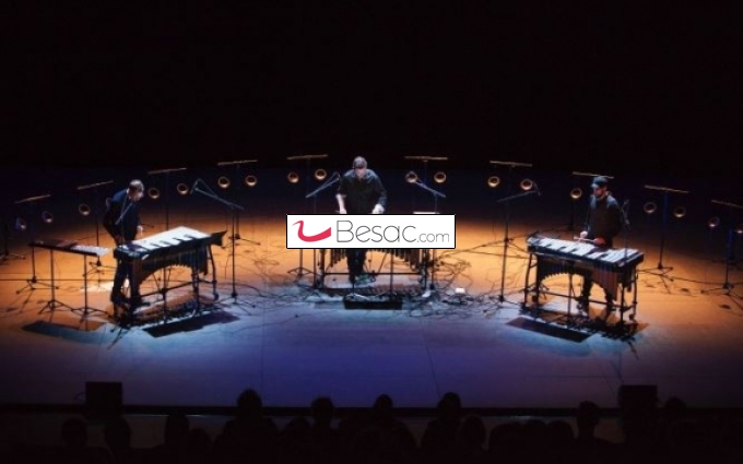 Le collectif de percussions suisse Eklekto et Ensemble 0 interprètent une nouvelle pièce de Tristan Perich pour trois vibraphones et sons électroniques 1-bit.