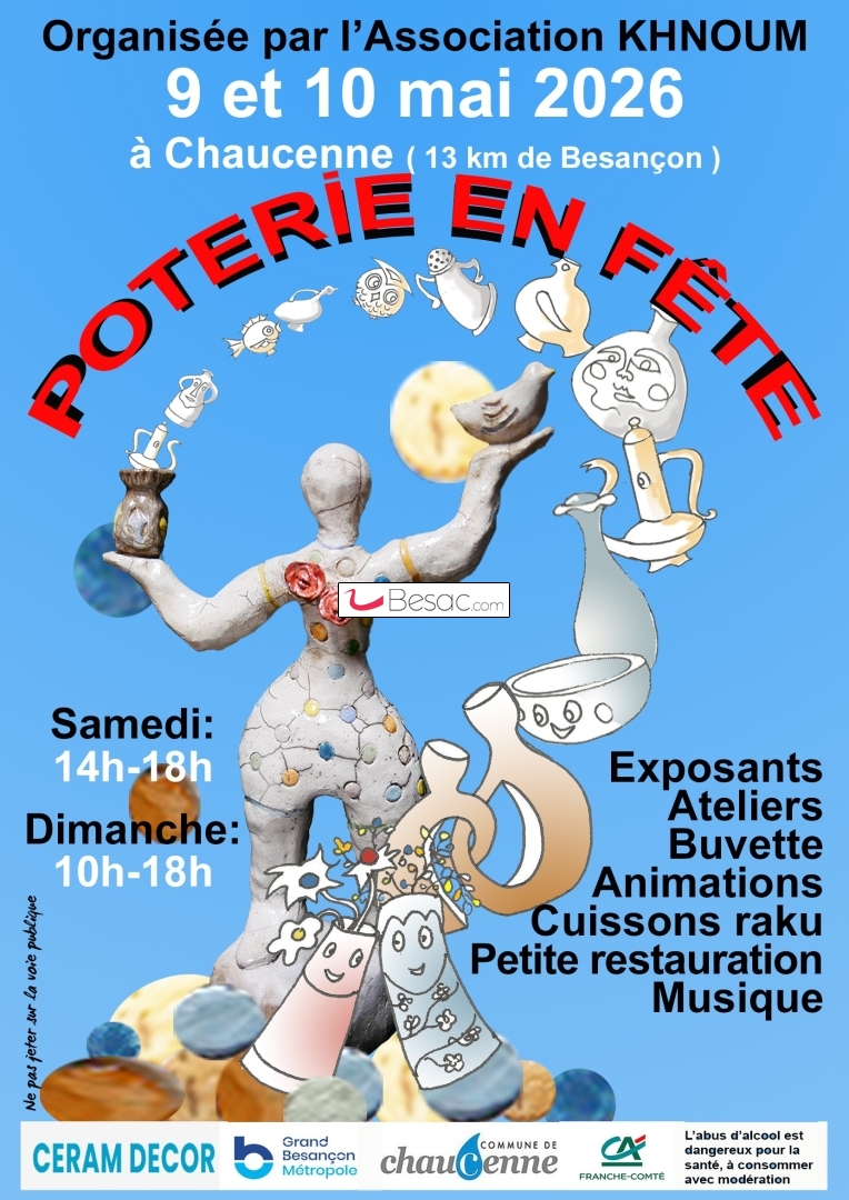 ExpositionsFête de la poterie à Chaucenne (13km de Besançon) les samedi 9 mai (14h-18h) et dimanche 10 mai 2023 (10h-18h), quartier mairie :
