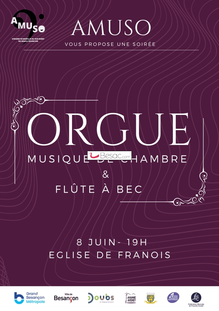 Amuso, pôle d’enseignement musical du grand Besançon métropole vous propose une soirée musique de chambre, orgue et flûte à bec.