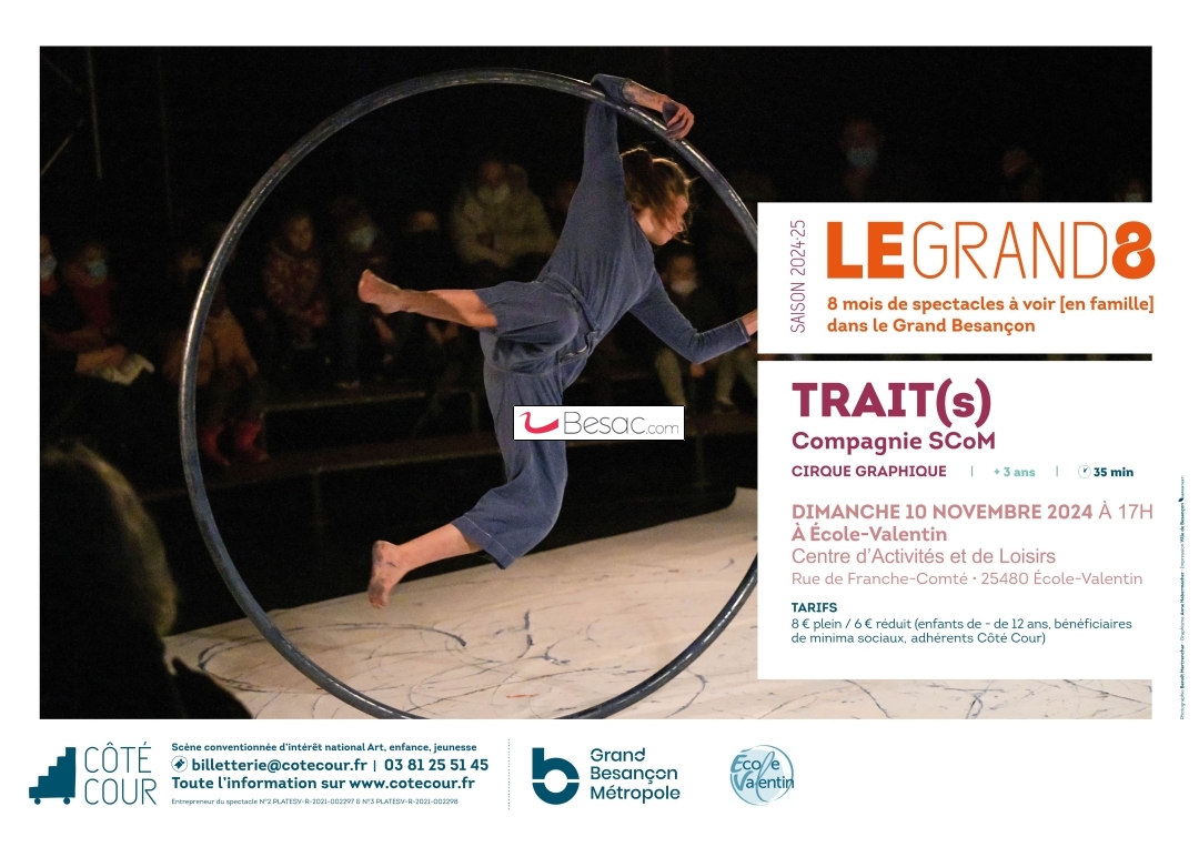 "Trait(s)" nous offre une expérience de cirque graphique, singulière dans sa forme et dans son propos, et qui revisite trois fondamentaux de cet art : le corps, la famille et le cercle.