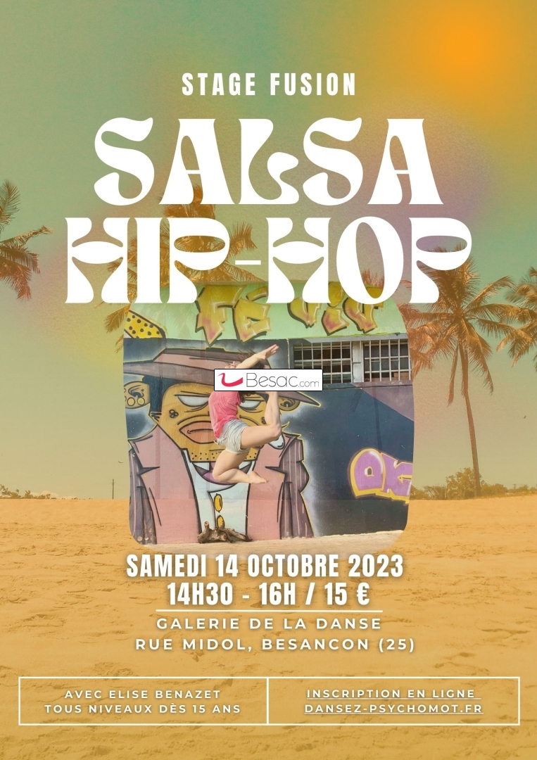 Sports, Loisirs(Re) Découvrez une fusion originale mêlant les shines de la salsa et le groove du hip-hop. Ce stage, ouvert à tous dès 15 ans, s'adresse à celles et ceux qui aiment enrichir leurs technicité et s'amuser sur des chorégraphies rythmées.