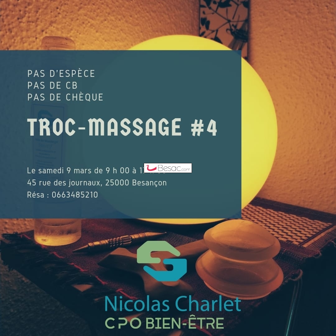 Sports, LoisirsAprès une 3ème édition du Troc'Massage remplie de belle rencontre et quelques mois d'attente, le Troc' Massage revient pour une 4e édition !