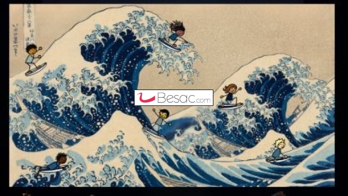 Raconté à hauteur d’enfants cette histoire nous plonge dans le rouge ocre des peintures rupestres ou celui de Raoul Dufy, le bleu de l’estampe japonaise d’Hokusai ou celui de Geneviève Asse, le violet de Claude Monet, les motifs « aborigènes » d’Australie, la malice du Street Art ou le clair-obscur de Rembrandt au gré d’un film magnifique mêlant vidéo et animation graphique.