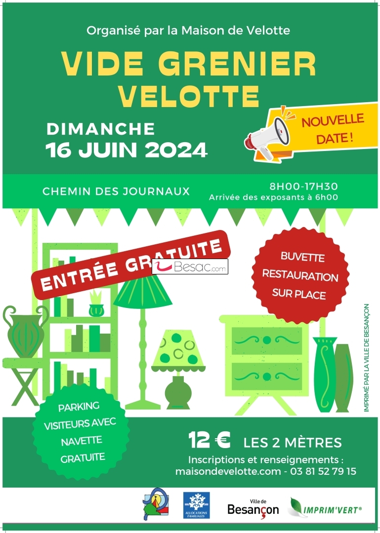 La Maison de Velotte organise son traditionnel vide-grenier le dimanche 16 juin de 08H00 à 17H30.