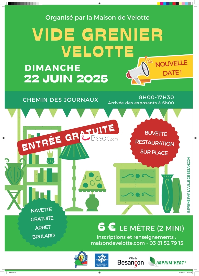 Marchés, Vide-greniersInscriptions uniquement à la Maison de Velotte à partir du lundi 12 Mai, l’après-midi de 14H00 à 18H00 du lundi au vendredi !