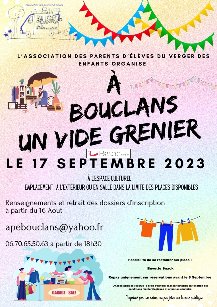 Marchés, Vide-greniersN'hésitez pas à venir nombreux au vide-grenier de bouclans qui aura lieu le dimanche 17 septembre !