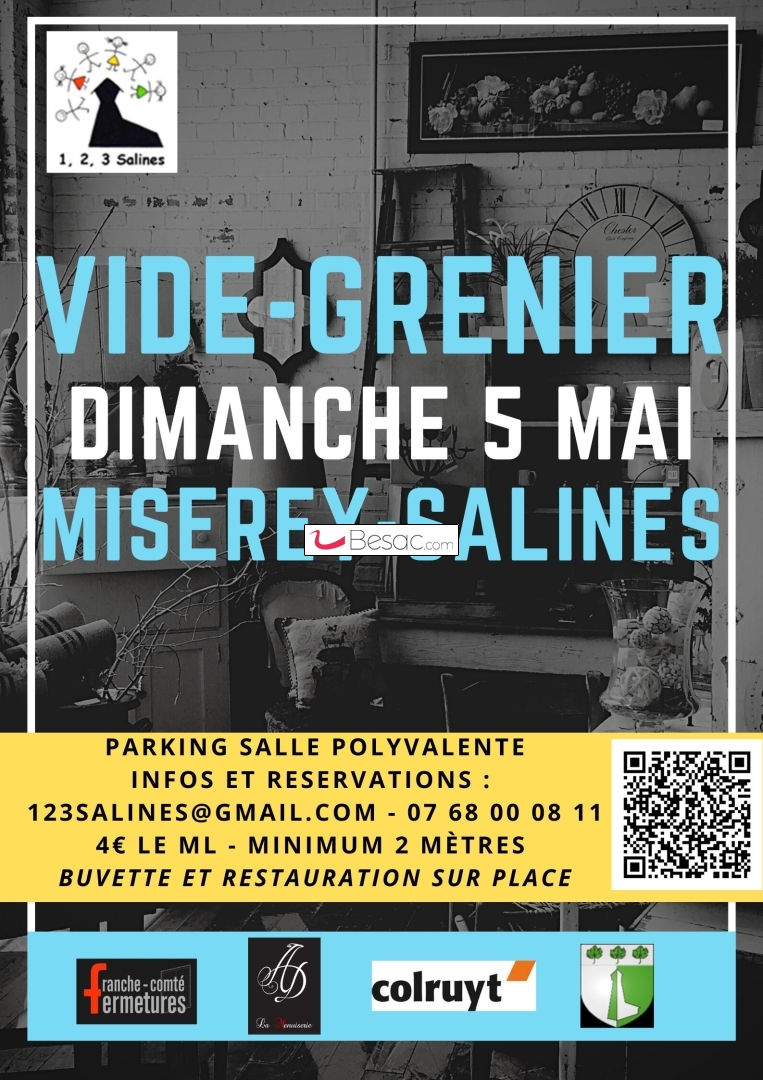 Marchés, Vide-greniersLe traditionnel vide grenier de Miserey Salines aura lieu le 5 mai sur le parking de la salle polyvalente